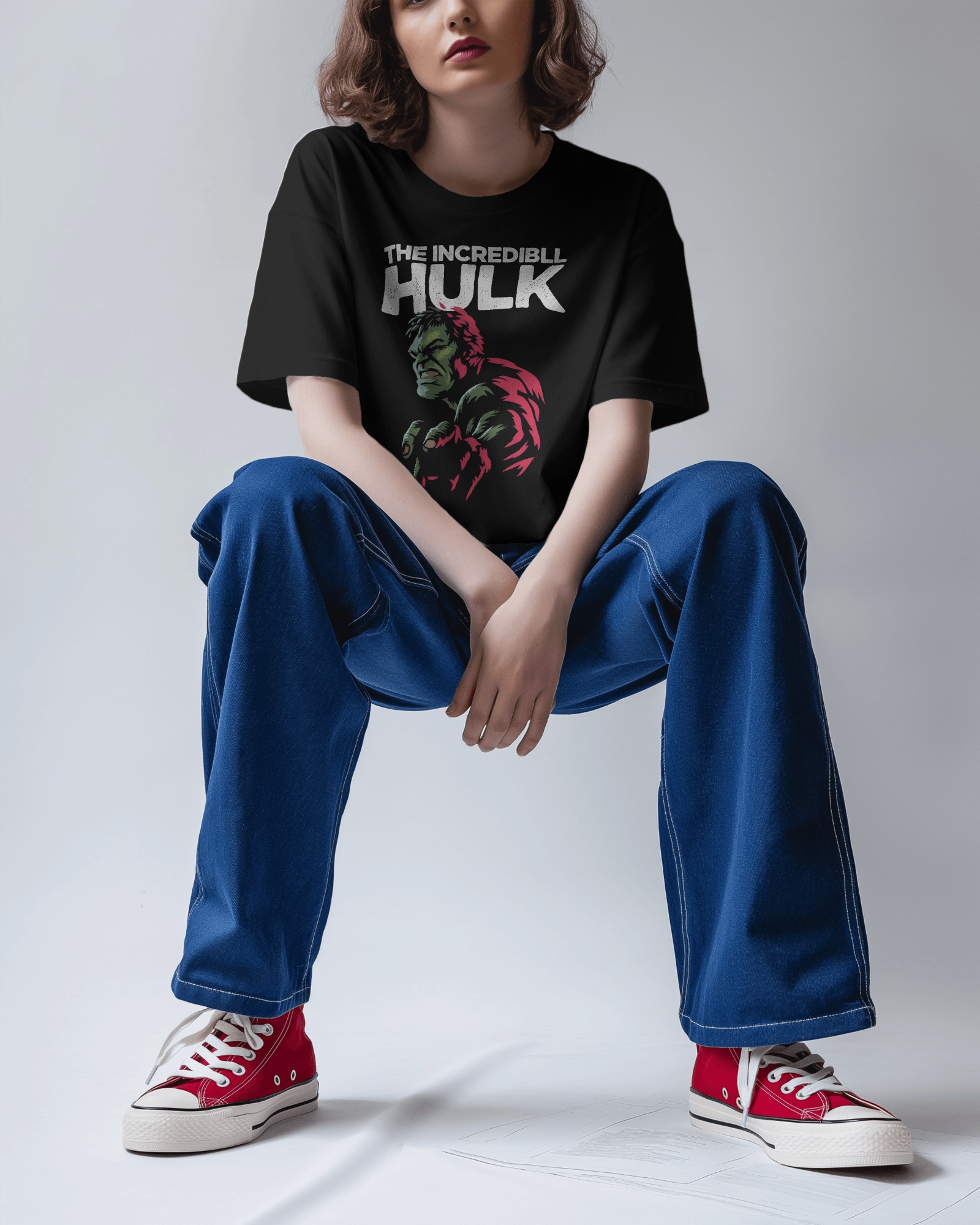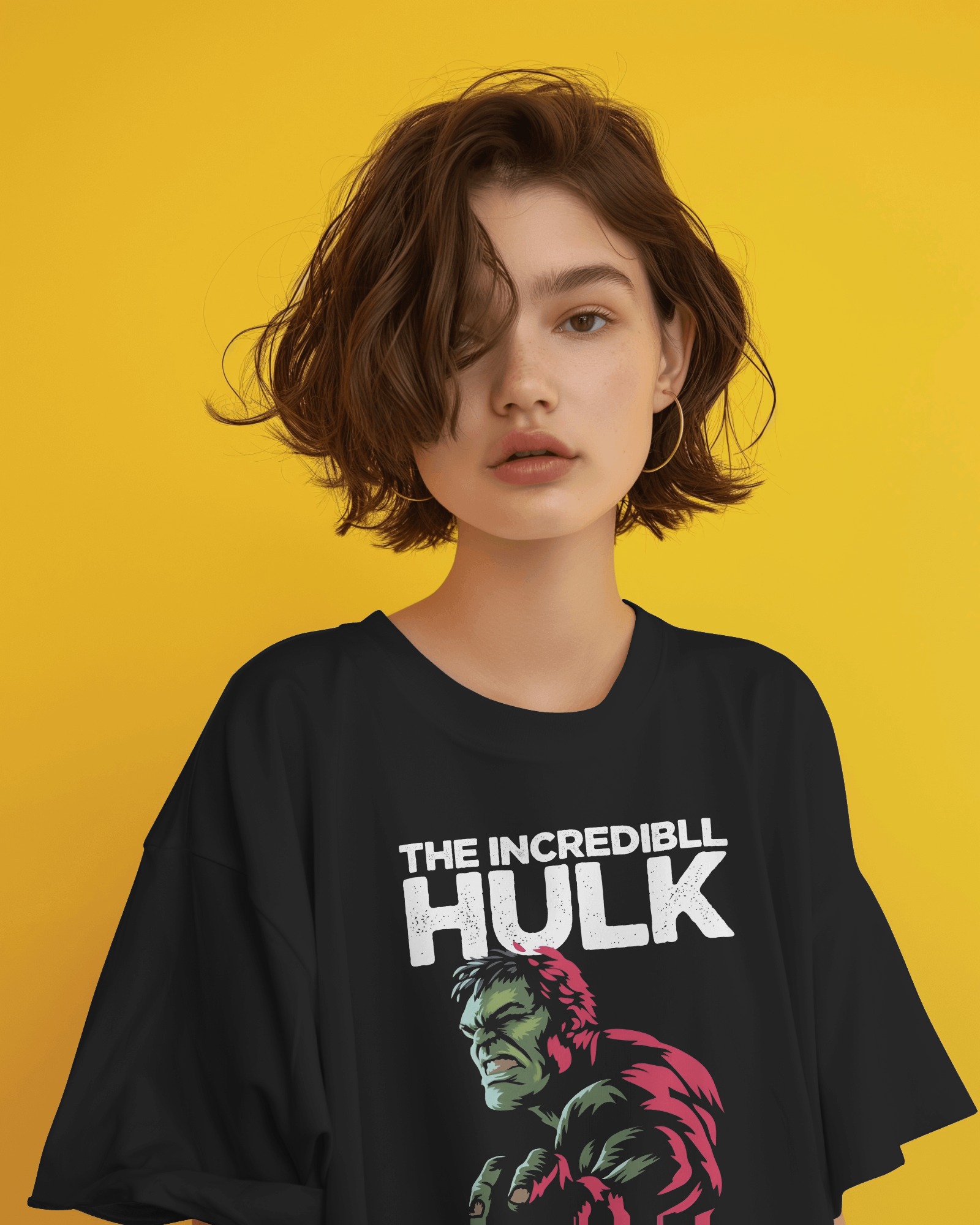 Unleash your inner power with The Incredible Hulk Oversized Black T-Shirt from Black X Fashion, designed for bold personalities who embody strength, confidence, and attitude. This tee celebrates the spirit of one of pop culture’s most iconic characters — The Hulk — making it a must-have for every streetwear enthusiast and comic lover.